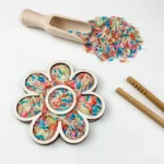 Children can sort the shapes by colour, fill them with play rice, corn, beans or even different materials from the home kitchen. The possibilities are endless – that’s the charm of sensory toys. 🌈